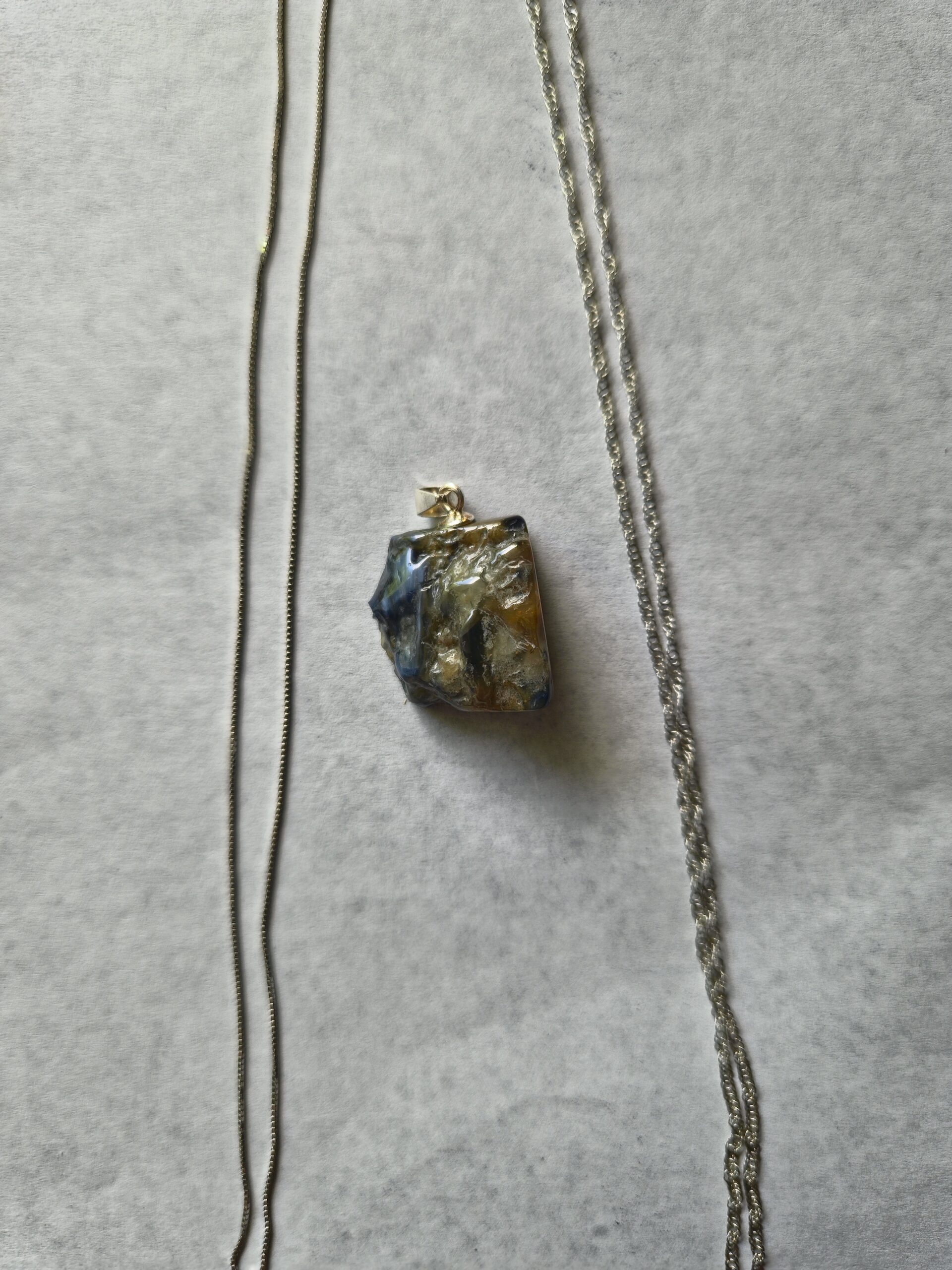 Pietersiet steen met s925 oogje. De steen is 1,6cm hoog en 1,6cm breed. Zilveren ketting komt erbij. Keuze uit een gladde of twisted ketting. Tijdens betalen kan je dit in de notities delen.