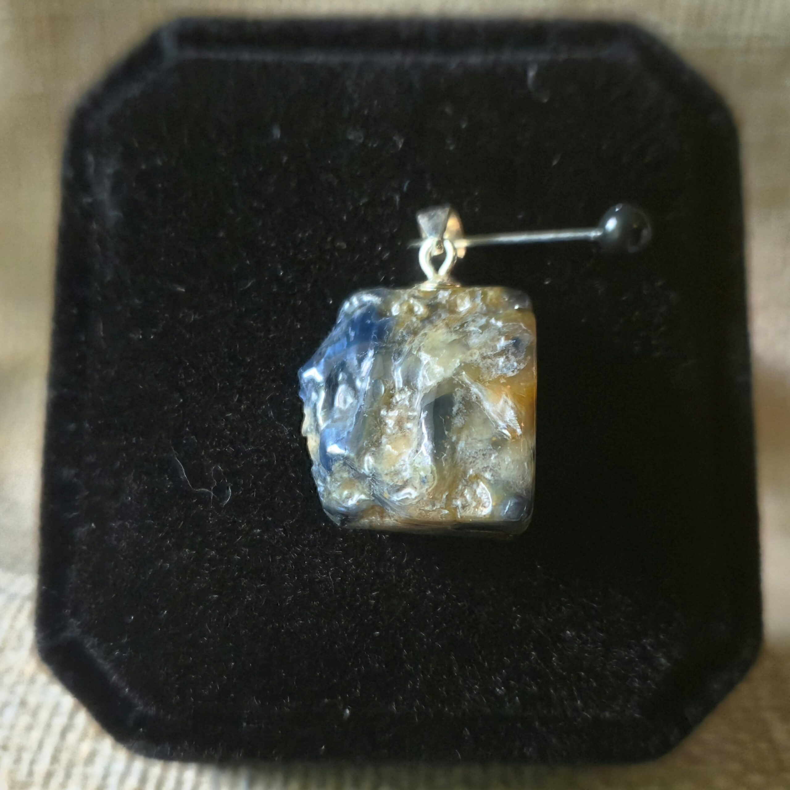 Pietersiet steen met s925 oogje. De steen is 1,6cm hoog en 1,6cm breed.