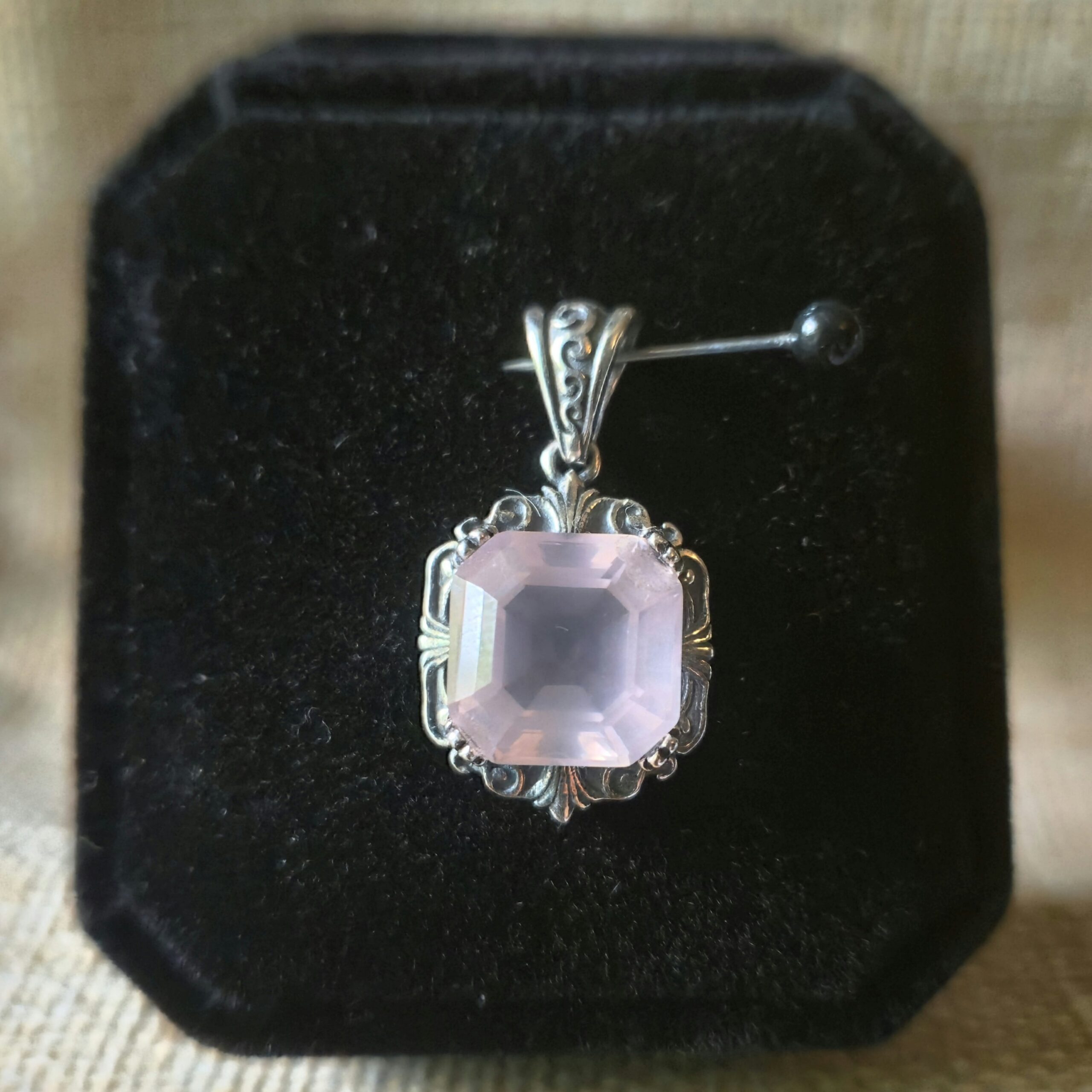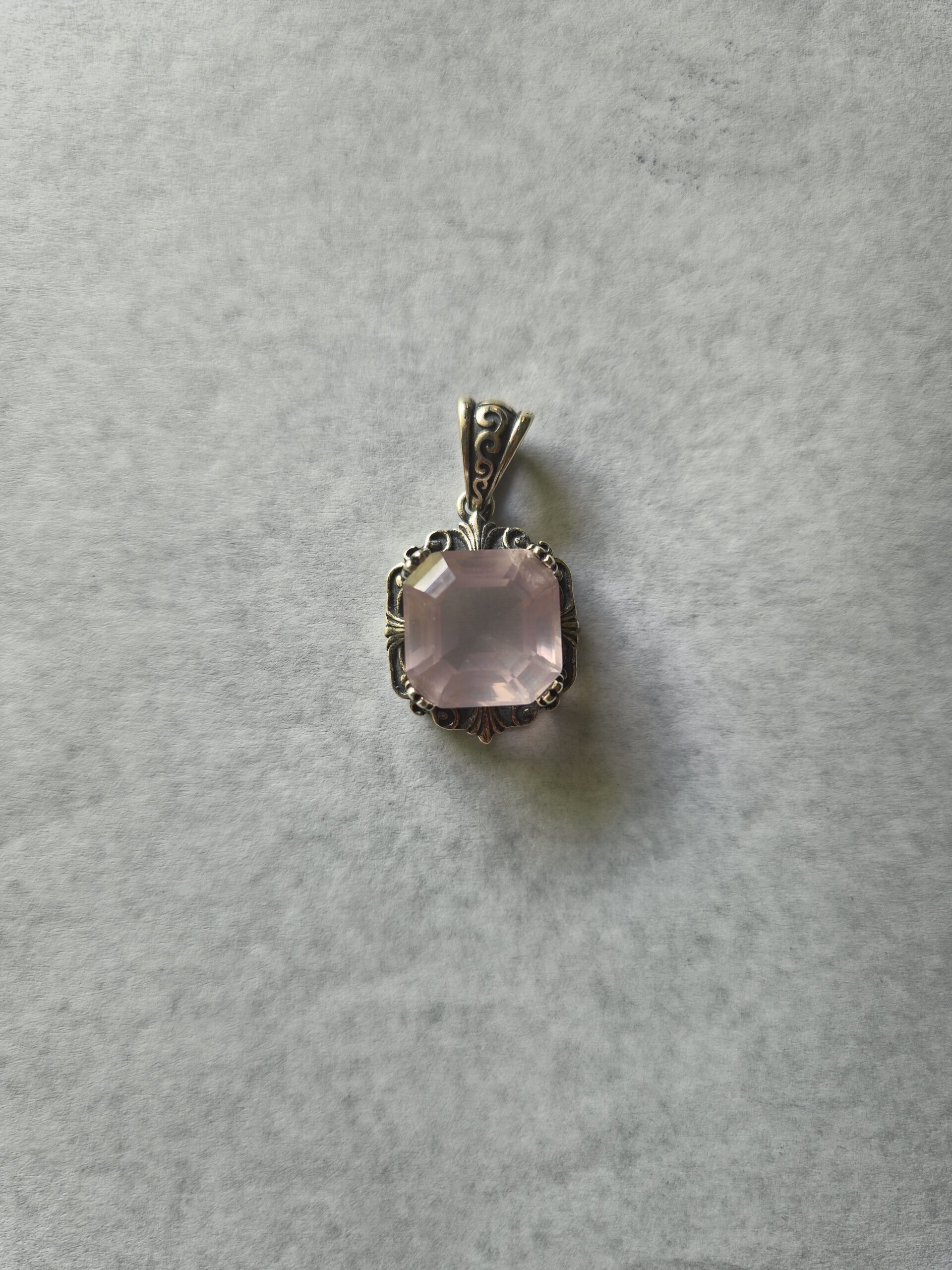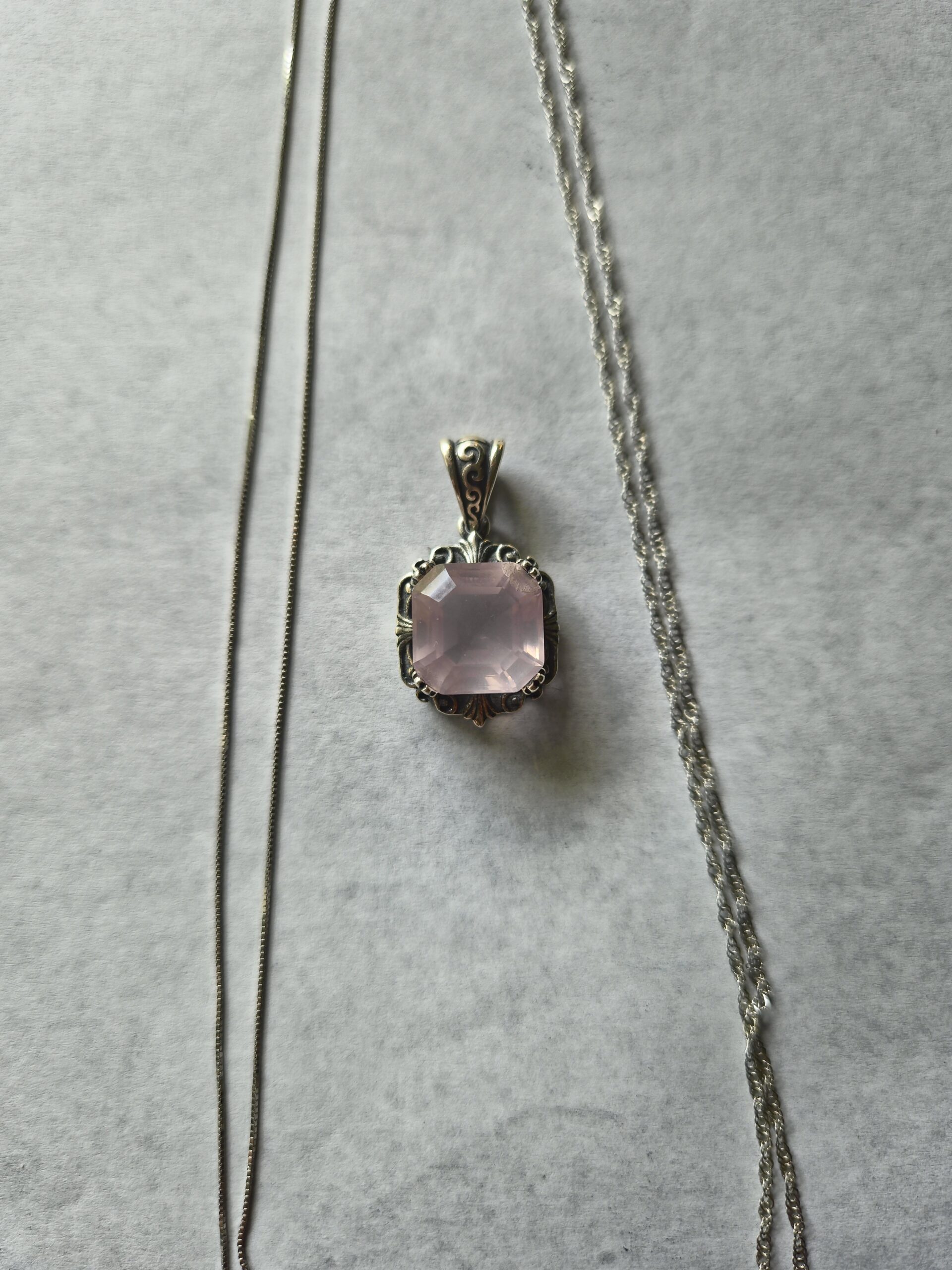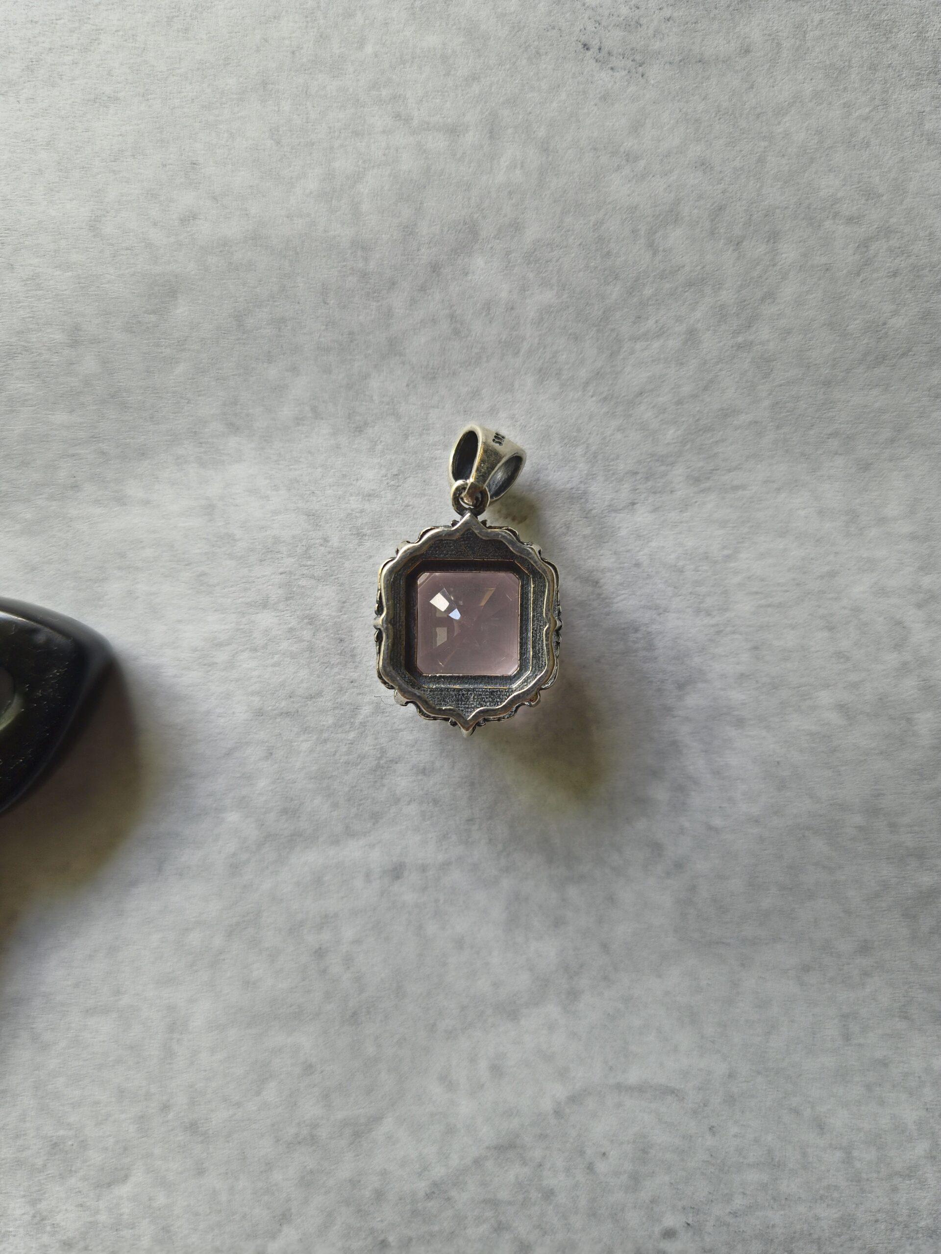 Rozenkwarts in vintage look zilveren setting De steen is 1,1 cm hoog en breed. Zilveren ketting komt erbij. Keuze uit een gladde of twisted ketting. Tijdens betalen kan je dit in de notities delen.