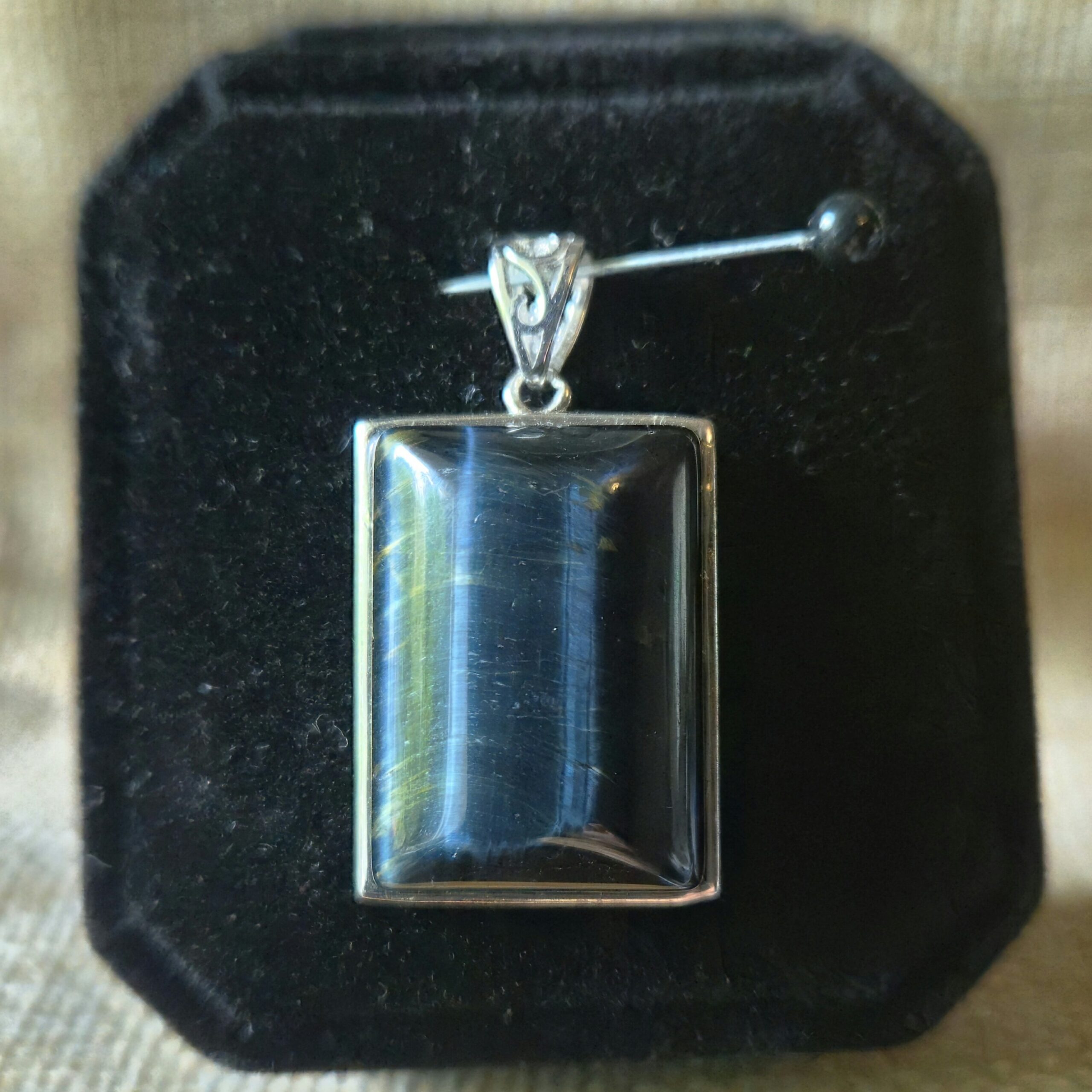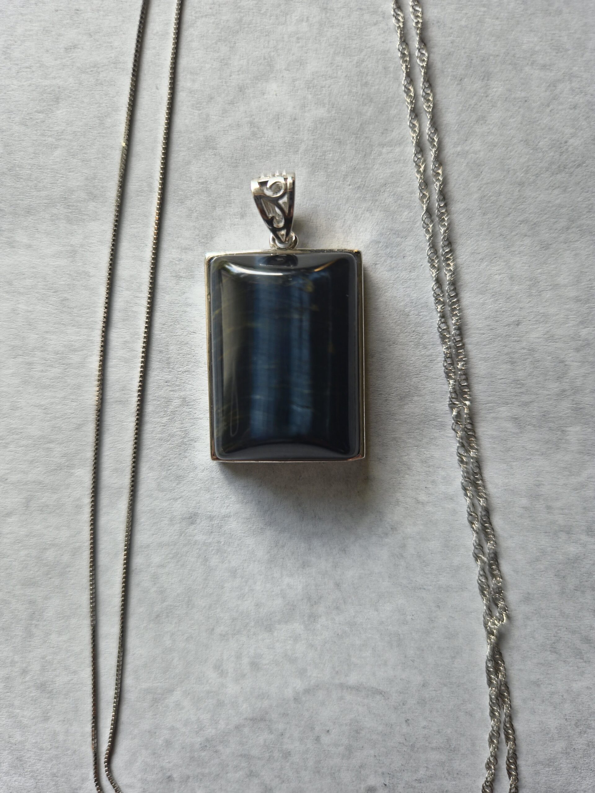 Valkenoog rechthoek 2,4cm hoog en 1,7cm breed. Zilveren ketting komt erbij. Keuze uit een gladde of twisted ketting. Tijdens betalen kan je dit in de notities delen.