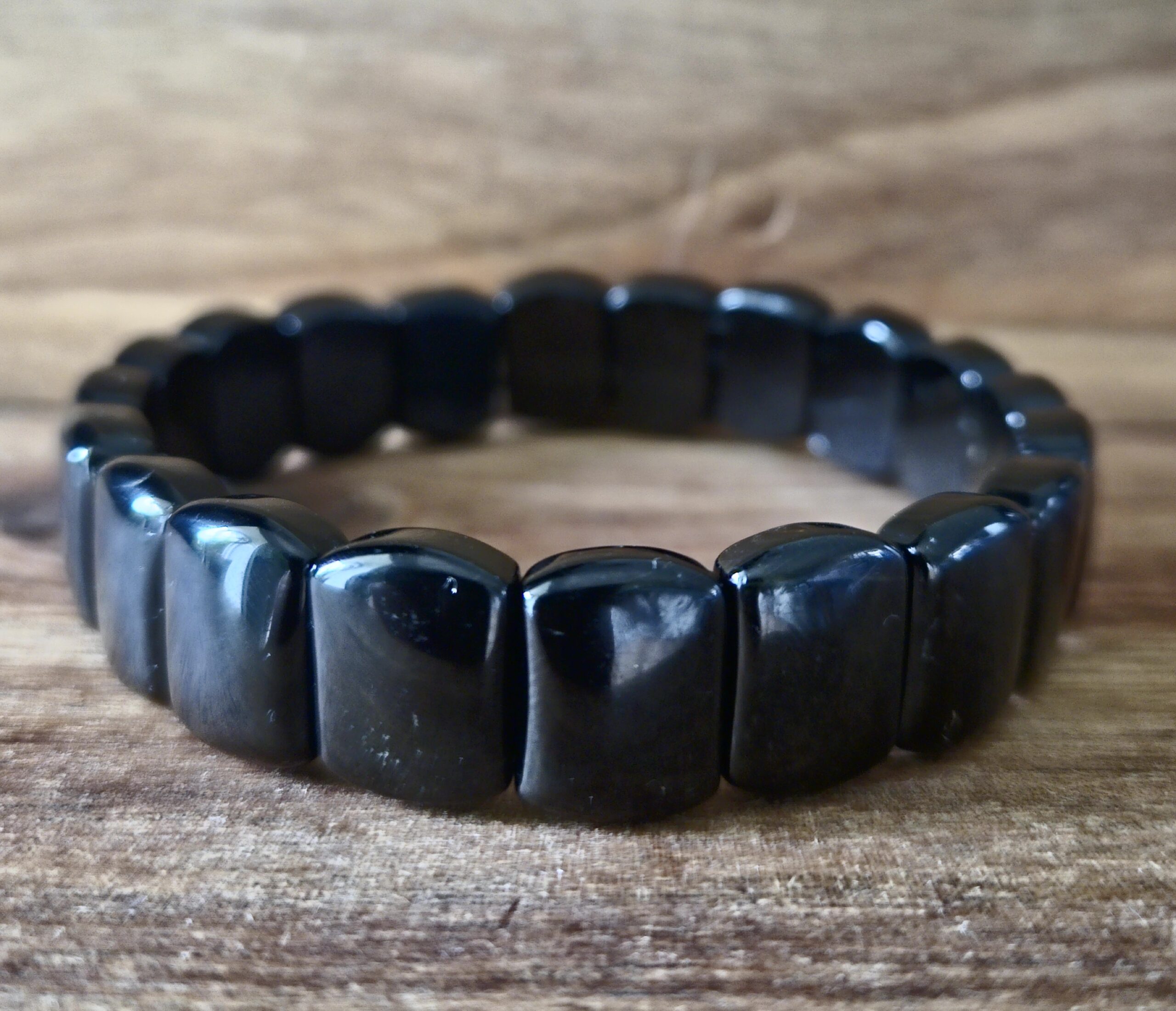 Vierkante zwarte toermalijn elastiek armband. De kraal is ongeveer 1,3cm hoog en 1cmbreed.